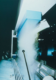 (1)濕空氣通過一個特殊設(shè)計(jì)的送風(fēng)裝置,以一種近似層流,低紊流的氣流狀態(tài)均勻地送出。這種幾乎無紊流的送風(fēng)氣流可避免與車間內(nèi)周圍的干燥空氣混合。