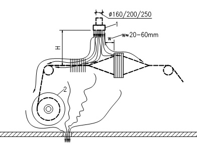 該系統(tǒng)將被調(diào)節(jié)后的空氣直接送入經(jīng)紗的開口區(qū)域,因此,相對于投資和能耗來講,可達(dá)到較好效果。主要送風(fēng)特點(diǎn)如下: