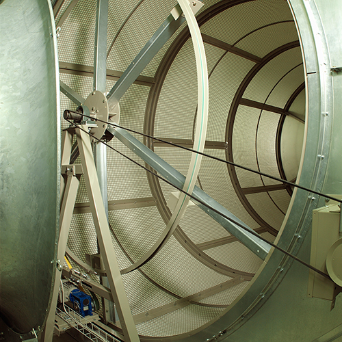 用途:依靠回風(fēng)機(jī)抽吸,含塵空氣在穿過濾料進(jìn)入轉(zhuǎn)籠的過程得到過濾,清潔空氣從敞開的一端進(jìn)入噴淋室同時(shí)配套吸嘴把濾料表面的塵雜吸入集塵器中。